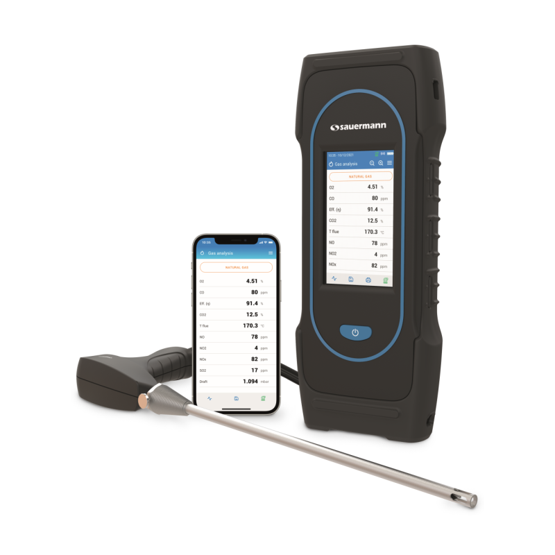 Analyseur de combustion Si-CA 230 Kit 2V avec écran tactile, 2 cellules électrochimiques (O2, CO) évolutif jusqu'à 6 cellules, dilution automatique du CO, sonde de prélèvement 300 mm avec tuyau de 3 m et pot à condensat avec filtre, coque de protection aimantée, sacoche de transport, chargeur d'alimentation, câble USB, guide de démarrage rapide et certificat d'étalonnage. Communication sans fil pour application mobile et imprimante déportée (en option). Garantie 2 ans.