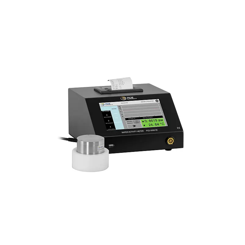 L’AW-mètre de laboratoire 4 canaux permet la mesure individuelle ou simultanée de l’activité de l’eau dans quatre capteurs. Il couvre une plage de 0 à 1 aw et mesure la température de -10 à +50 ºC. Équipé d’un écran LCD tactile de 7", il affiche les valeurs en temps réel et sauvegarde les données pour analyse ultérieure. L’appareil dispose de trois modes de mesure (normal, rapide, continu), d’un étalonnage de 1 à 6 points, et intègre une imprimante ainsi qu’une interface USB/RS232 pour la gestion et l’exportation des données via le logiciel fourni.