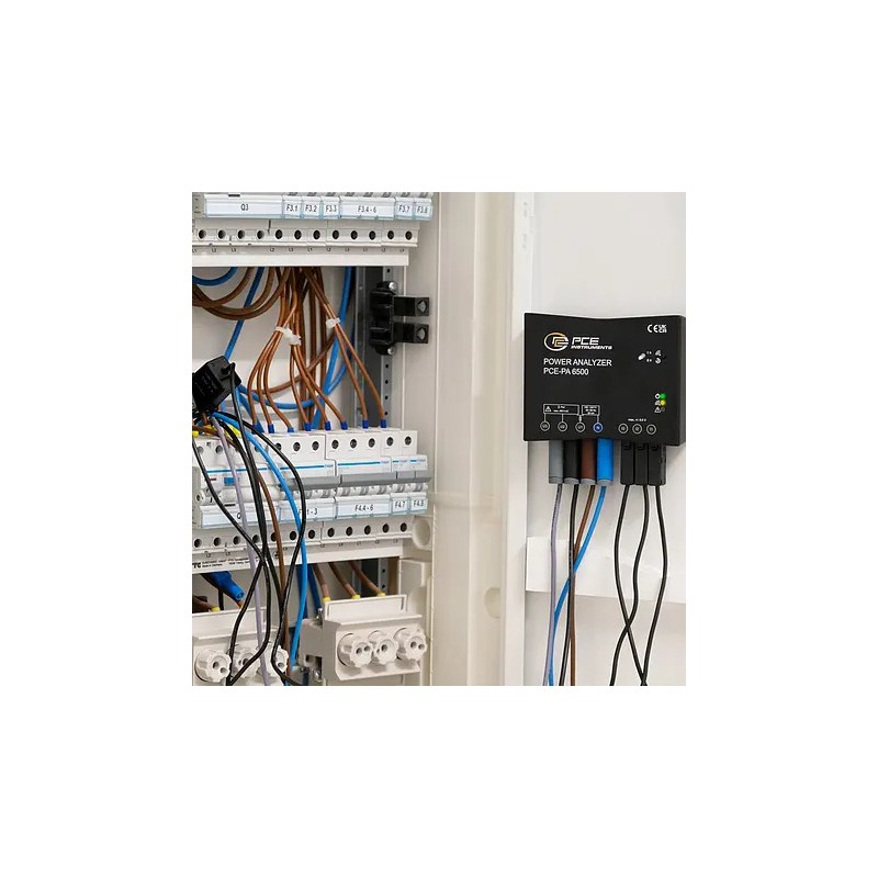 Ce wattmètre mesure les valeurs de courant et de tension via les pinces de courant et les câbles de test. Cest à partir de là que sont déterminées les puissances active, apparente et réactive, qui sont transmises chaque seconde à lappareil via la connexion WLAN. Cest là que les données sont sauvegardées en ordre chronologique, sont traitées graphiquement et peuvent être analysées ou exportées. La mesure avec le wattmetre se fait au moyen de pinces de courant. Sil ny a pas de connexion à Internet, vous pouvez sauvegarder les données dans la mémoire interne de 32 GB au format *.csv, pour un traitement ultérieur. Nous proposons, comme accessoire, un adaptateur pour cartes SD qui permet daugmenter la durée denregistrement à plus dun an, même lors de lenregistrement de données avec un intervalle dune seconde. Il est aussi possible denvoyer périodiquement par courriel les fichiers au format *.csv, les télécharger sur un serveur via FTP ou les transférer à la plateforme de mesure une fois la mesure terminée. Linteraction avec le wattmètre se fait essentiellement via WLAN et le navigateur web ou par lAppli (Bluetooth). La tension est fournie et mesurée via les adaptateurs magnétiques et les câbles de test. Vous pouvez connecter ce wattmètre à nimporte quel tableau de distribution principal et secondaire, appareils ou systèmes, sans avoir besoin dinterrompre lalimentation électrique. La gestion de lalimentation électrique est la priorité absolue. Si la consommation nest pas mesurée et que les paramètres de courant, de tension, de fréquence et de puissance ne sont pas enregistrés, il est pratiquement impossible daméliorer lefficience. le wattmètre permet de contrôler toute la consommation dénergie et aide à réduire les coûts énergétiques. Spécifications techniques : Tension alternative AC Plage 40 ... 400 V Résolution 0,01 V Précision ±1 % de la valeur Courant alternatif AC Plage 2 ... 9500 A Résolution 0,01 A Précision ±1 % de la valeur Puissance active Plage 80 W ... 3800 kW Résolution 0,01 W Précision ±1 % de la valeur Puissance réactive Plage 80 VAR ... 3800 kVAR Résolution 0,01 VAR Précision ±1 % de la valeur Puissance apparente Plage 80 VA ...3800 kVA Résolution 0,01 VA Précision ±1 % de la valeur Facteur de puissance Plage 0 ... 1 Résolution 0,01 Précision ±1 % de la valeur Autres spécifications Diamètre câble max. 10 mm Fréquence déchantillonnage 26.000 Hz Mémoire 32 GB, interne Capacité mémoire Phases individuelles Phases combinées 22.000 valeurs 38.000 valeurs Fréquence denregistrement 1 ... 60 minutes Interface Wi-Fi / Bluetooth Puissance absorbée 100 mA DC Catégorie de sécurité CAT III 300 V Fusibles 250 mA, FA, IR>=30 kA Langues menu Allemand / Anglais (GB) / Anglais (US) / Espagnol / Français Classe de protection IP40 Alimentation 100 ... 240 V, 50/60 Hz (±10 %) (entre neutre et phase A) Pile 1 x pile de 3 V type CR-2032 Capacité 245 mAh Conditions opérationnelles -5 ... +40 °C / 0 ... 80 % H.r. Conditions de stockage -5 ... +40 °C / 0 ... 80 % H.r. Dimensions 123 x 96 x 36 mm Poids 202 g