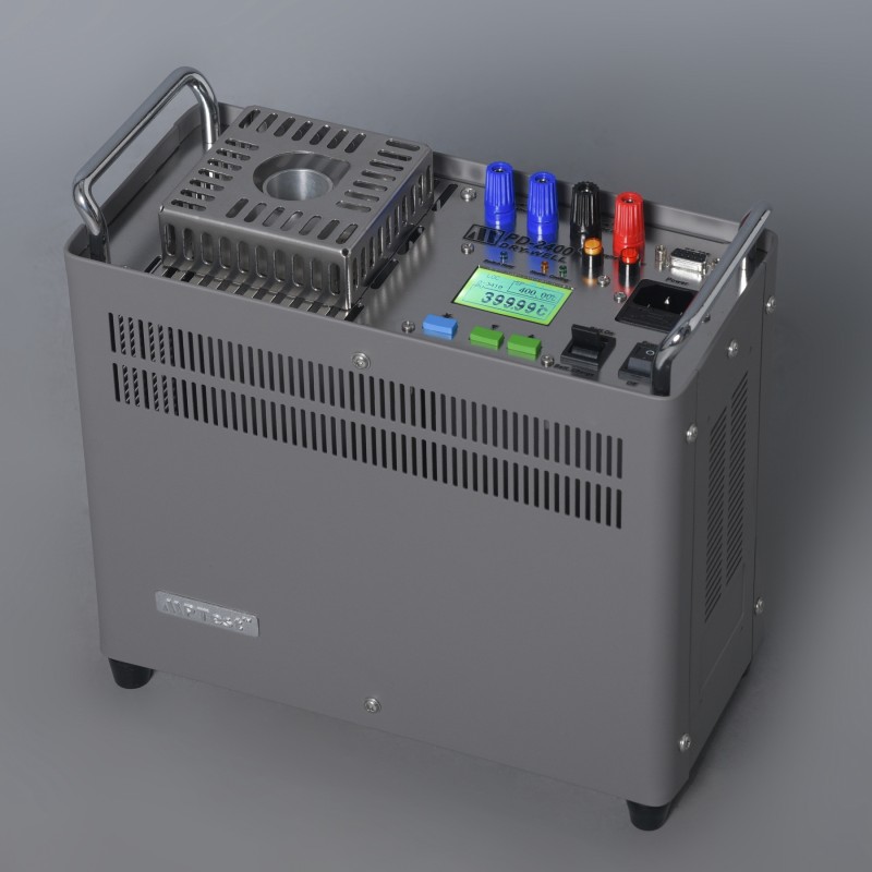 Le PD-2400 est un calibrateur de température à puits sec compact, portable et économique, conçu pour les applications à température moyenne. Il est équipé d’un bloc chauffant conique et de manchons de transfert thermique offrant une excellente conductivité tout en empêchant le blocage par des corps étrangers. Il peut être alimenté par une batterie plomb-acide 24 V et est livré avec une mallette de transport. Fort de plus de 20 ans d’historique de commercialisation, il bénéficie d’une fiabilité largement éprouvée. Sa plage de fonctionnement s’étend de 50 °C à 400 °C, avec une stabilité de température de ±0,02 °C sur 10 minutes et une profondeur de puits de 160 mm. Des manchons personnalisés peuvent être usinés pour s’adapter précisément aux diamètres des thermomètres à étalonner.