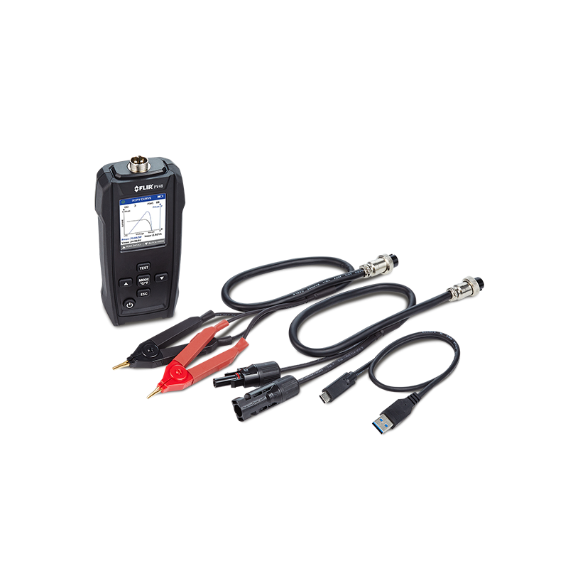 La FLIR PV48 est un outil performant conçu pour évaluer rapidement la puissance et l’efficacité maximales des panneaux solaires. Elle permet de mesurer avec précision les paramètres essentiels tels que la puissance maximale, la tension, le courant, la tension en circuit ouvert (COV), le courant de court-circuit (ISC) ainsi que la température ambiante.