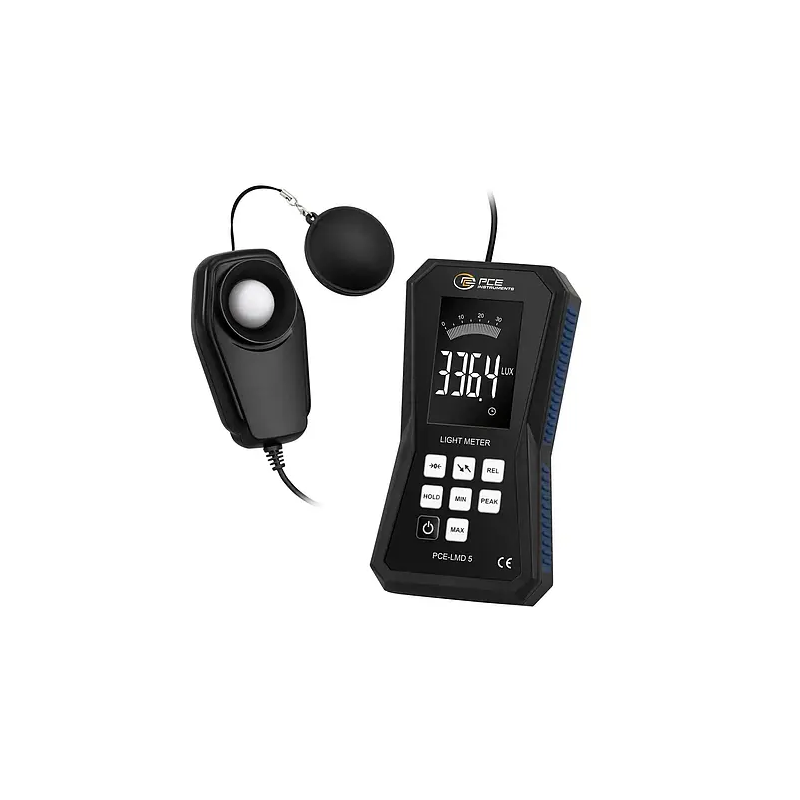 Les valeurs peuvent être affichées en Lux ou en Footcandle, avec affichage numérique et graphique à barres. Les fonctions MIN, MAX, REL et PEAK facilitent l’analyse des variations lumineuses. En mode Peak-Hold, la fréquence de mesure atteint 10 µs pour capturer les valeurs crêtes.