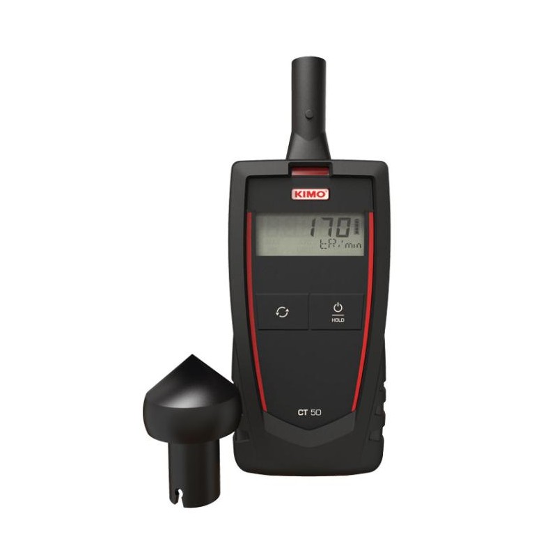 Tachymètre portable type CT 50 avec sonde optique et embout de contact intégrés (60 à 60 000 tr/min et 4 à 2500 m/min). Afficheur 1 ligne. Fonction : Hold. Livré avec sacoche de transport, 1 m de ruban réfléchissant et certificat d'ajustage.