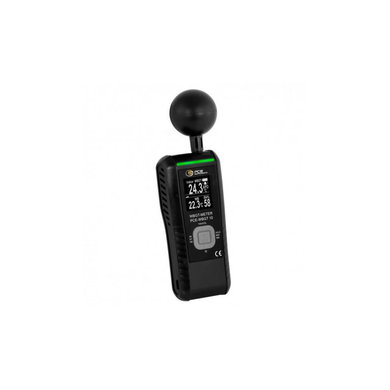 Le détecteur de stress thermique mesure les conditions climatiques à l'intérieur et à l'extérieur pour évaluer le stress thermique dans les environnements de travail, les installations sportives ou industrielles. Il affiche en temps réel la température de l'air, la température du globe noir, la température du bulbe humide, le point de rosée et l'humidité relative. L'appareil dispose d'une mémoire de 8 MB pouvant stocker jusqu'à 260 000 valeurs, transférables via USB-C pour analyse sur PC. Une alarme WBGT sonore, un mode veille et un arrêt automatique assurent un usage sécurisé et confortable. L'écran LCD de 1,8 pouces et la batterie rechargeable par USB-C rendent l'appareil maniable et polyvalent.